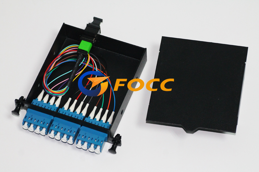 Singlemode G.652 Fiber Optic MPO MTP Cassette 12 Cores Rack Mounted Designed is used for 0.9mm fanout cable connection and breakout cable management in distribution area of MDA, IDA or HDA data centers. It could be installed in 19 inch racks and cabinets. It could accommodate MPO MTP cassette modules or MPO MTP adapter panels.
